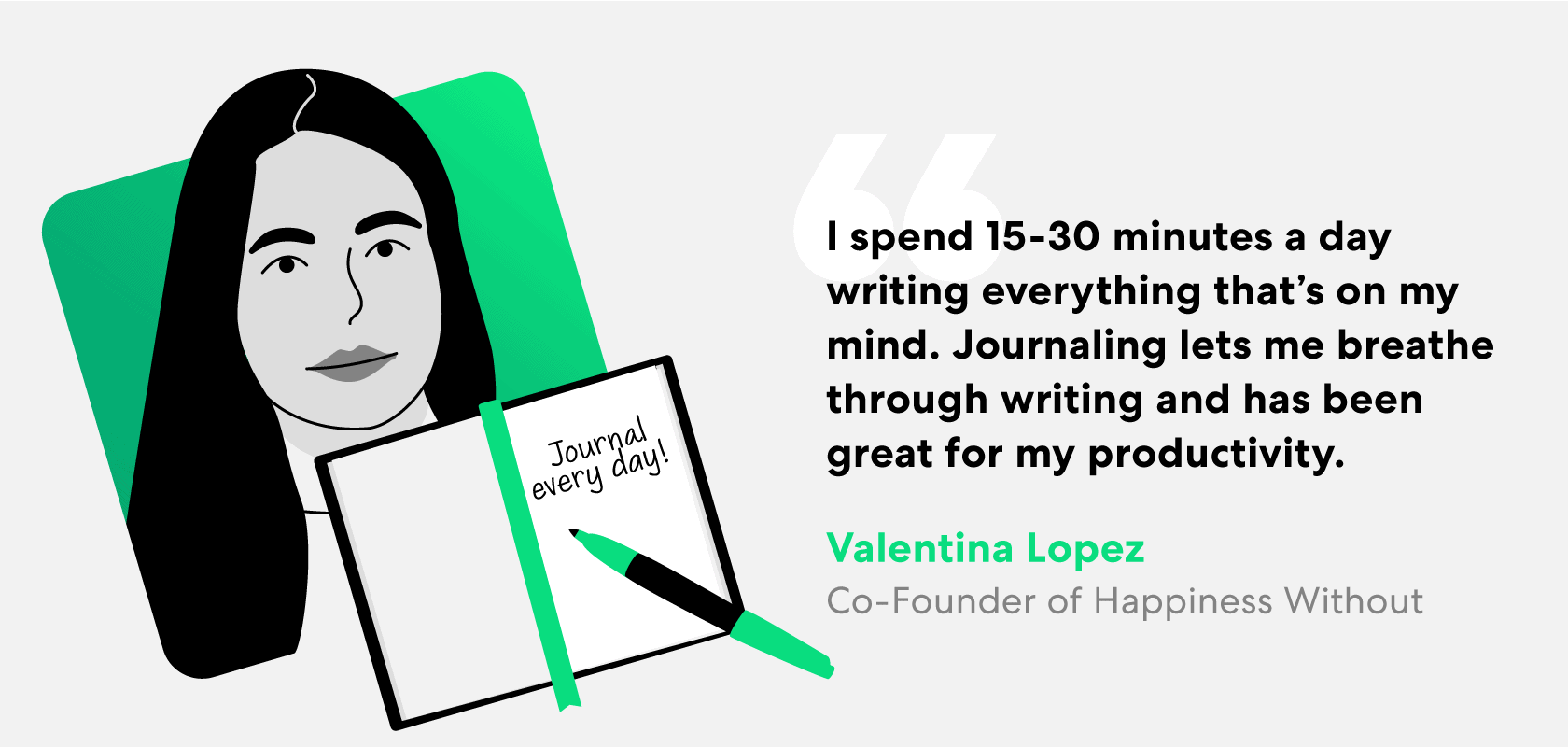 Valentina Lopez, who is the co-founder of HappinessWithout, attributes her productivity and daily business success to journaling.
